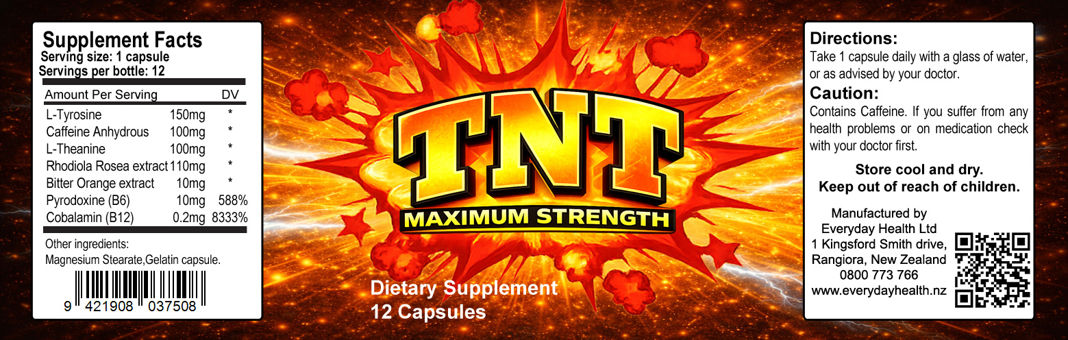 TNT is a caffeine based energy supplement, formulated to support alertness and awakeness.